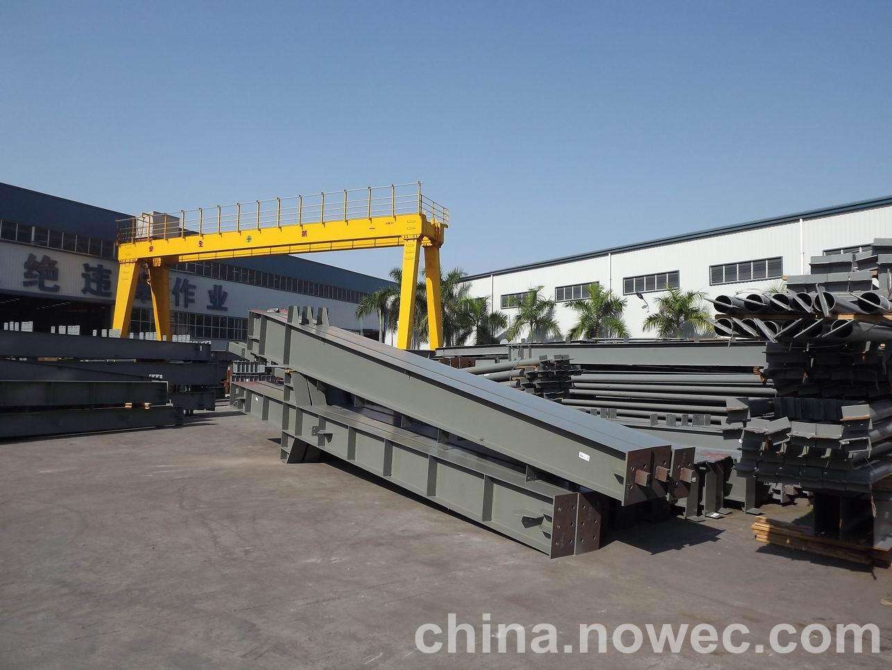 条状单元一般沿长跨方向分割,其宽度约为1~3个网格,其长度为l2或l2/2(l2为短跨跨距)。块状单元一般沿益阳网架平面纵横向分割成矩形或正方形单元。每个单元的重量以现有起重机能胜任为准。条(块)与条(块)之间可以直接拼装,也可空一网格在高空拼装。由于条(块)状单元是在地面拼装,因而高空作业量较高空散装法大为减少,拼装支架也减少很多,又能充分利用现有起重设备,故较经济。这种安装方法适用于分割后网架的钢度和受力状况改变较小的各类中小型网架,如两向正交正放四角锥、正放抽空四角锥等网架。
